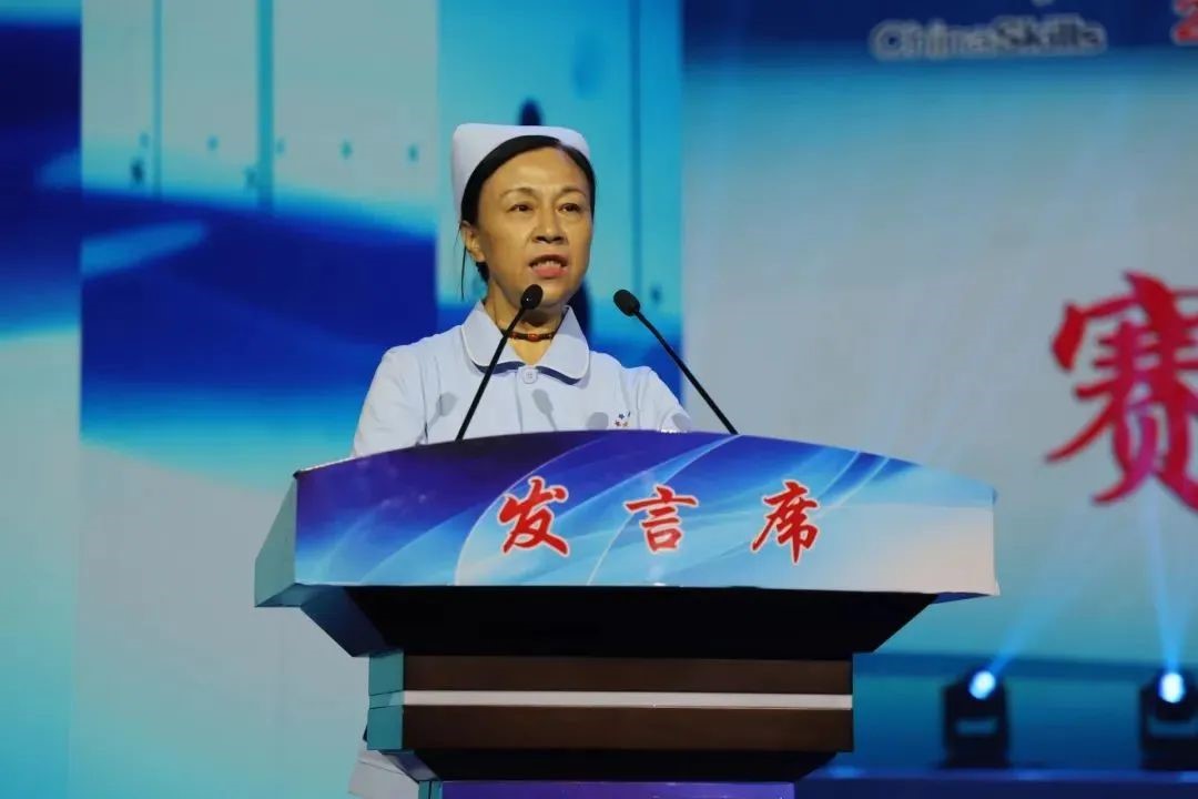 杨庆爱高度评价了莱芜职业技术学院作为承办单位在软、硬件等各方面的实力,以及对本次大赛的精心筹备和安排。她指出,领导的悉心关怀、专家的专业指导、裁判的严格执裁、标准化病人的紧密配合、参赛选手的全力以赴、工作人员的温馨服务共同促成了本次大赛的顺利举办,有效提高了大赛品质和“岗课赛证”融通。她全面系统讲解了大赛流程、理念、竞赛方式、标准化病人引入等方面的变化,并就团队协作、护患沟通、操作流程等方面提出了宝贵的意见和建议。